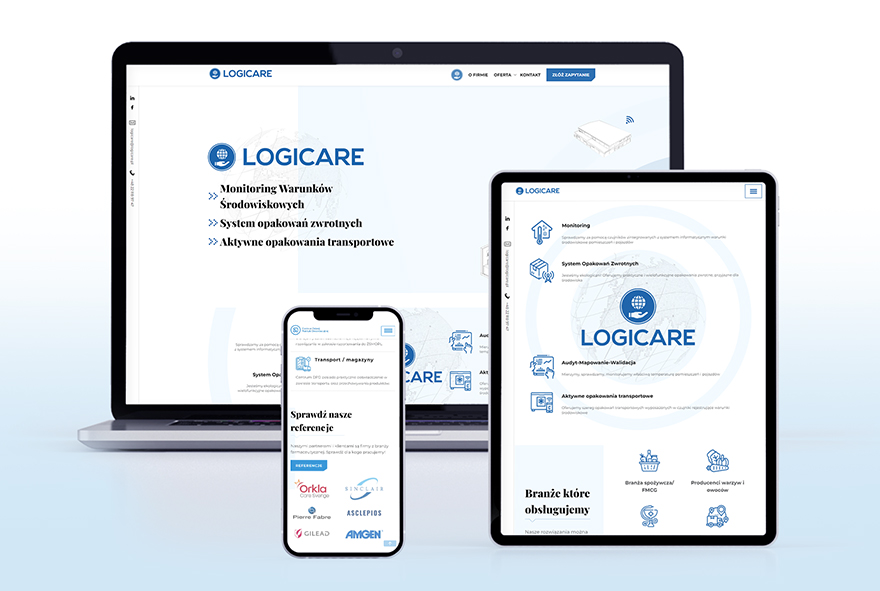 Firmowa strona www dla firmy z branży doradczej, monitorującej warunki środowiskowe Logicare. Profesjonalny wizerunek, przejrzystość informacji, całość oparta o system zarządzania treścią WordPress.