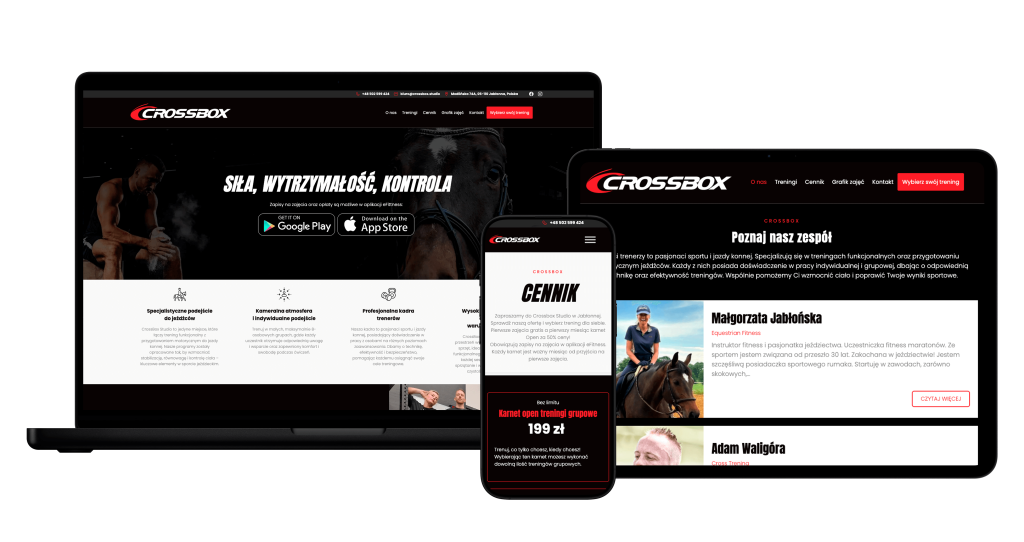 CrossBox Studio to przestrzeń stworzona dla osób, które chcą ćwiczyć w kameralnej atmosferze i z profesjonalnym wsparciem. Naszym zadaniem było zaprojektowanie i wdrożenie strony internetowej, która odda charakter tego miejsca – nowoczesnego, dynamicznego i pełnego pozytywnej energii.